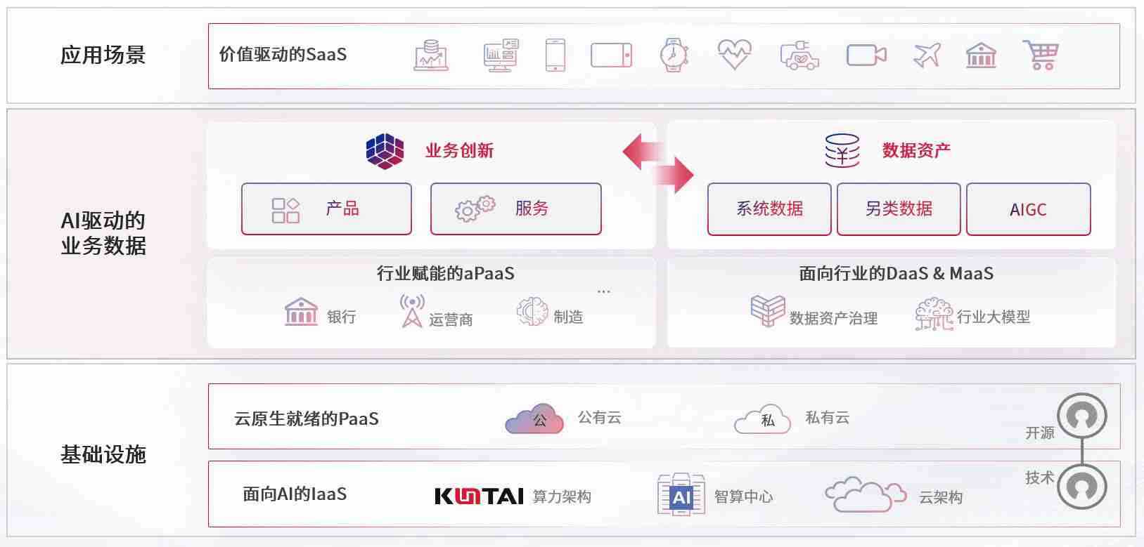 数字时代,,围绕企业数字化转型的关键要素,,,918博天娱乐官网数码开创性的提出数云融合战略和技术体系框架,,着力在云原生、、数字原生、、AI原生和信创产业上架构产品和服务能力,,为处在不同数字化转型阶段的快消零售、、、、汽车、、、金融、、、医疗、、、政企、、、、教育、、、运营商等行业客户提供泛在的敏捷IT能力和融合的数据驱动能力,,构建跨界融合创新的数字业务场景和新业务模式,,,助力企业级客户建立面向未来的核心能力和竞争优势,,,全面推动社会的数字化、、智能化转型升级。。。。